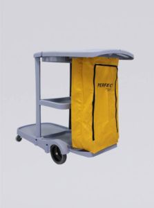Carro de limpeza compacto com tampa e bolsa para transporte e organização de equipamentos de limpeza. Estrutura Reforçada de alta Durabilidade – Fabricado 100% em Polipropileno – 3 Prateleiras robustas – Leve e Manobrável – Aparência profissional – Bolsa com zíper frontal – Roda emborrachada não marca e nem risca o piso – Cantos arredondados não causam danos a parede – Tampa para evitar dispersão de odores e entrada de insetos – Encaixe para até 12 produtos ESPECIFICAÇÕES